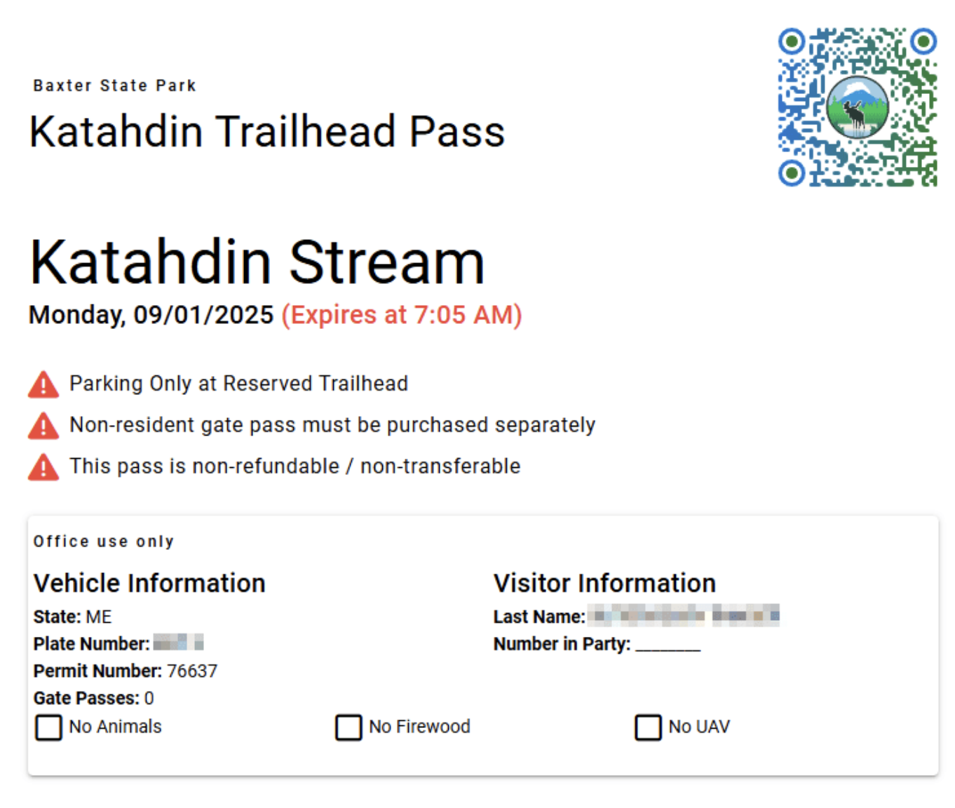 Unless you are camping inside Baxter State Park the night before, you will need a Katahdin trailhead pass.