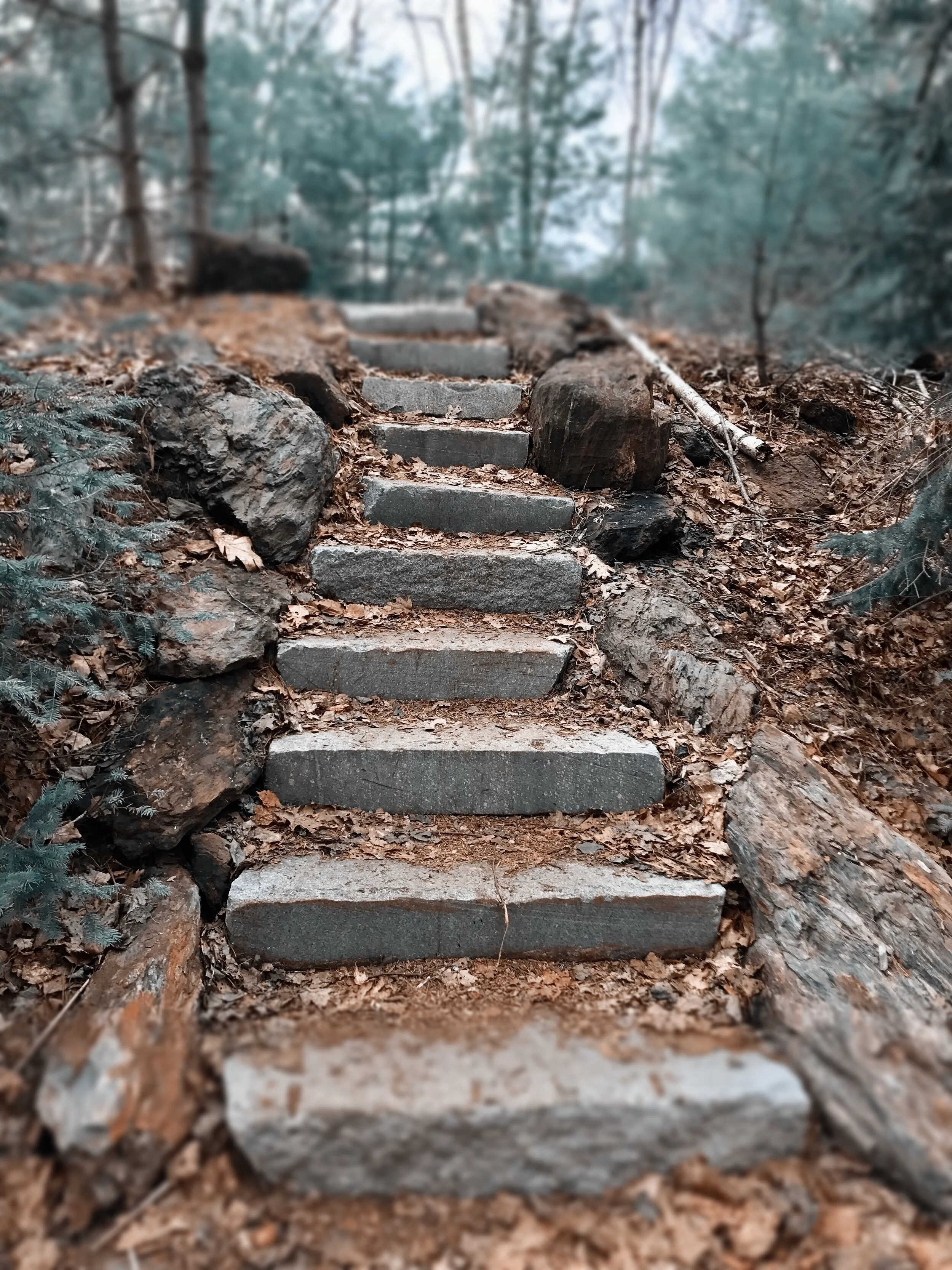 From the parking lot, the trail begins on the access trail, which is about 0.4 miles long. It’s a relatively flat trail that takes you through a nice wooden forest. Near the end of this trail, you will find a pretty cool fort made of fallen branches and trees, created by the kids at Camp Ketcha. The access trail eventually meets up with the Lucy R. Sprague Memorial Trail, a loop trail that will take you deeper into the woods. Along the trail, you will be pleasantly surprised by some pretty neat features, such as: wooden bridges, wooden platforms, stone steps, etc.
